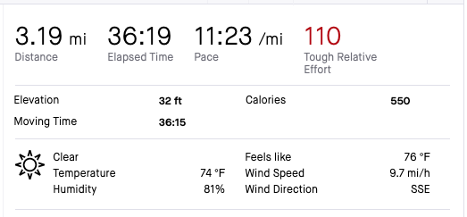 The weather was 75 degrees with 79% humidity. Traffic was no an issue and the Dilworth police were stopping traffic on highway 9 to let us runners run through without stopping. There were spectators throughout the entire run cheering everyone on which was great.